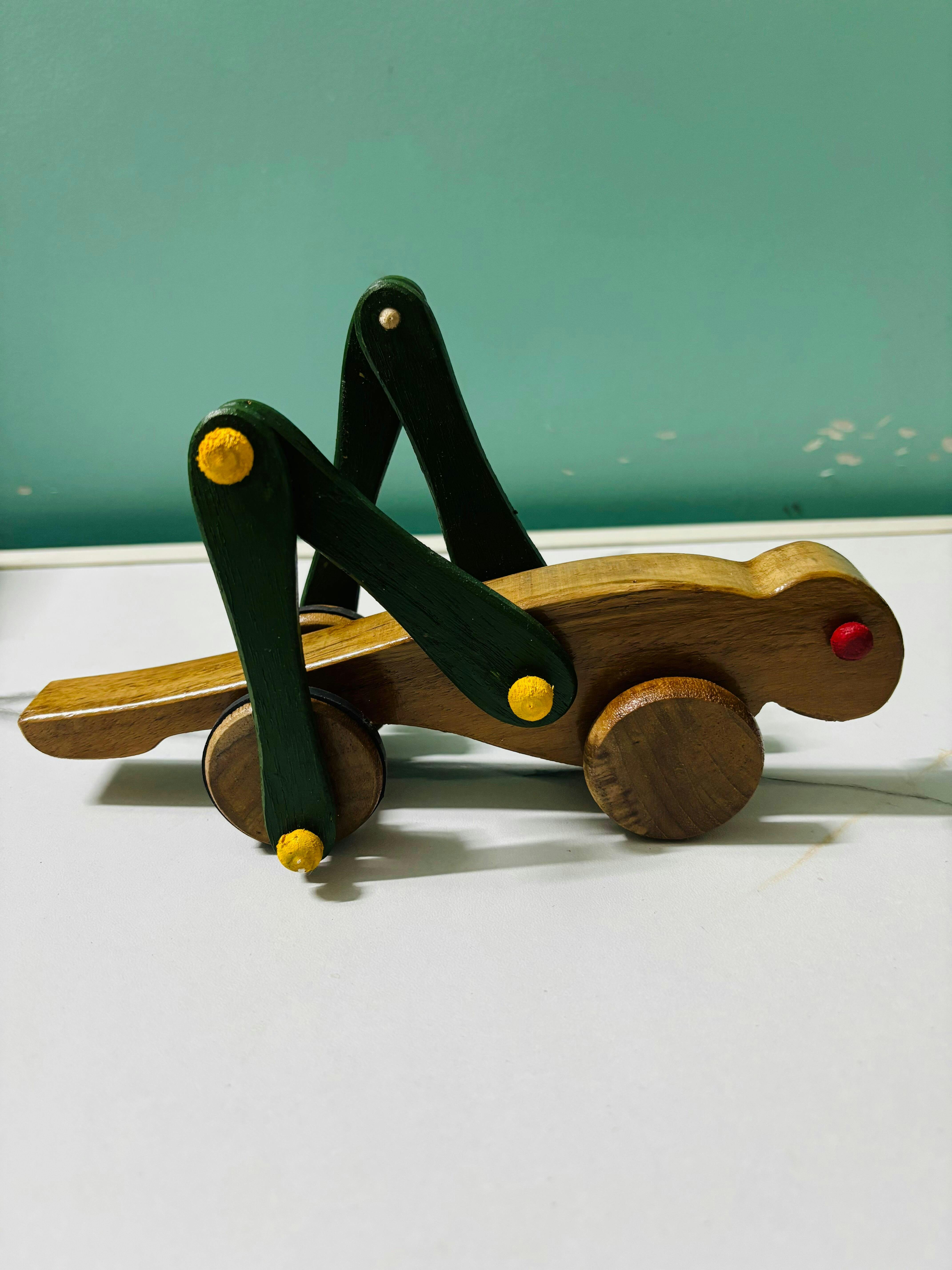 As a handcrafted wooden toy made from natural materials, each Grasshopper may display subtle surface variations and minor marks—characteristics that distinguish genuine artisanal work and affirm its handmade provenance.